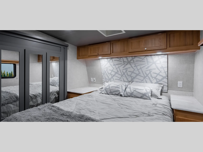 Sleeps 5 Slides 1 Length 35 ft Ext Width 8 ft 6 in Ext Height 13 ft 5 in Hitch Weight 2240 lbs GVWR 14000 lbs Dry Weight 10780 lbs Grey Water Capacity 50 gals Black Water Capacity 50 gals Tire Size 16" Furnace BTU 30000 btu Generator 4.0K Fuel Capacity 40 gals Number Of Bunks 1 Available Beds Queen Refrigerator Type 12V Axle Weight 8540 lbs Garage Size 19 ft 9 in LP Tank Capacity 30 lbs Water Heater Type On Demand Tankless AC BTU 15000 btu Awning Info Electric w/LED Light Axle Count 2 Number of LP Tanks 2 Shower Type Radius Electrical Service 30 amp Similar Floorplans