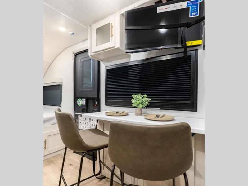 Sleeps 2 Length 23 ft Ext Width 8 ft Ext Height 10 ft 9 in Hitch Weight 470 lbs GVWR 5554 lbs Dry Weight 4054 lbs Cargo Capacity 1500 lbs Fresh Water Capacity 40 gals Grey Water Capacity 40 gals Black Water Capacity 30 gals Available Beds Murphy Refrigerator Type 12V Black Glass Convection Cooking Yes Number of Awnings 1 Water Heater Type Tankless AC BTU 15 btu TV Info 12V TV Awning Info 12' Shower Type Standard Electrical Service 30 amp Similar Floorplans
