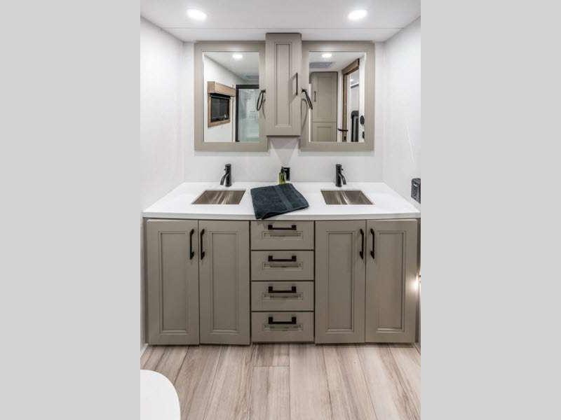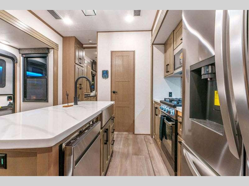 KZ Durango Gold fifth wheel G383RLQ highlights: Dual Sink Vanity Kitchen Island ... more about Durango Gold G383RLQ